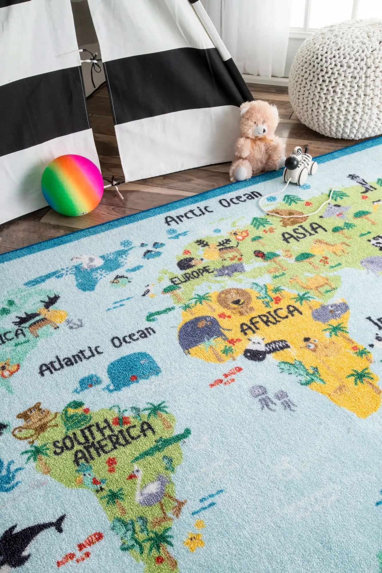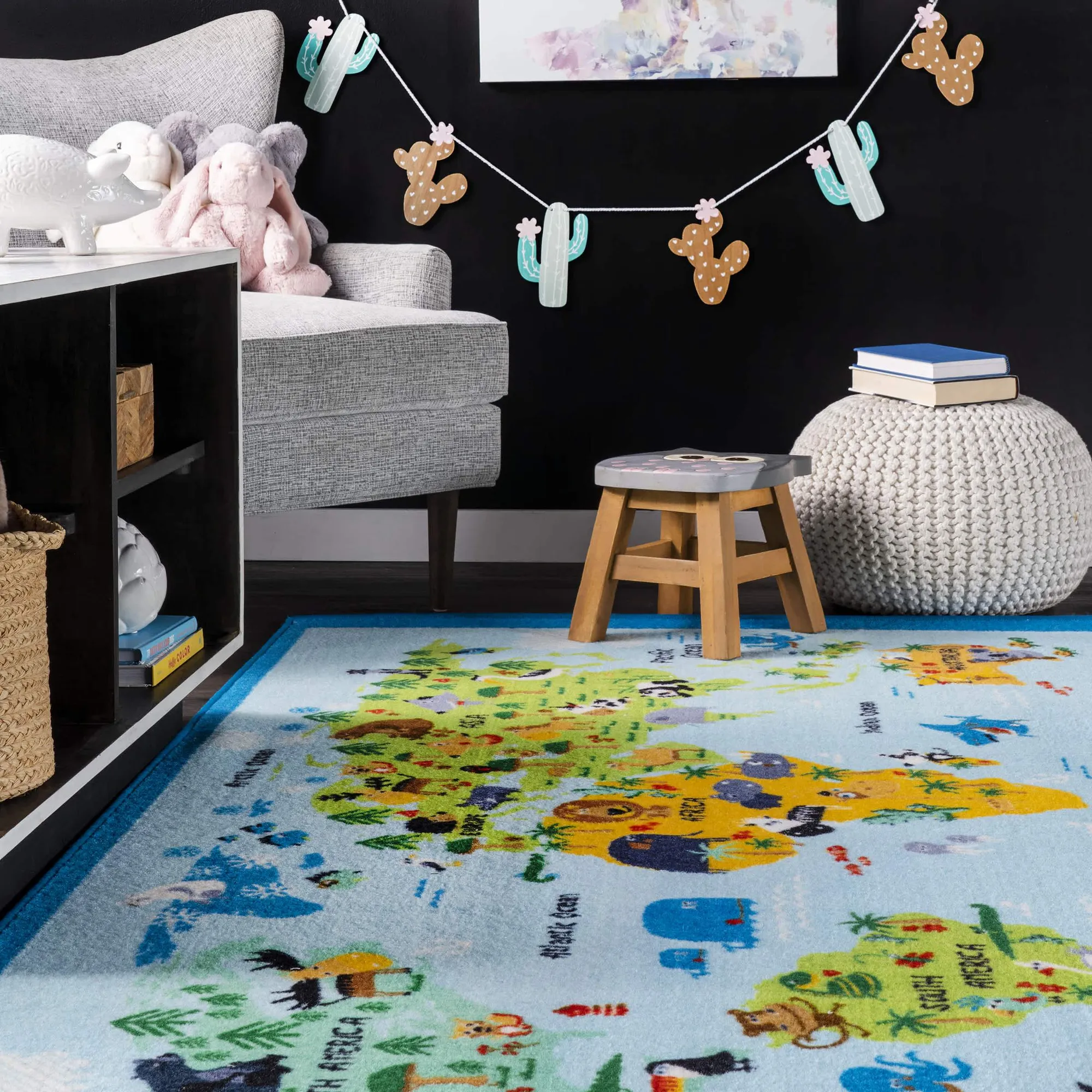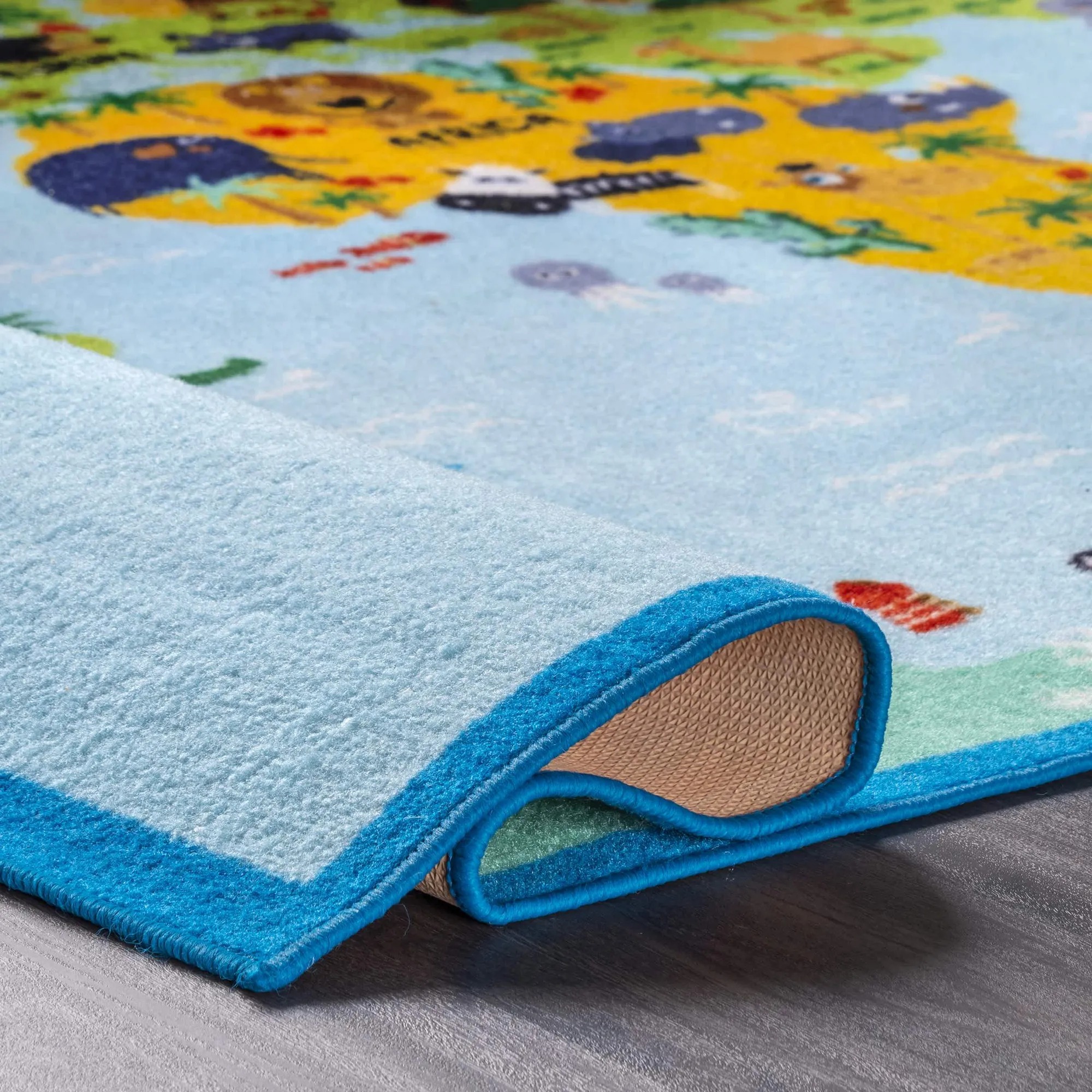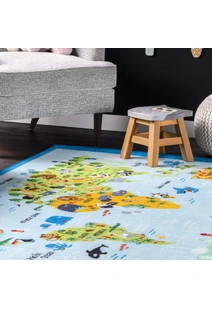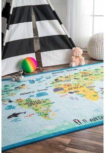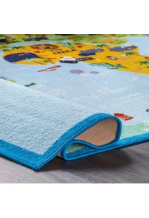 Kids Blue World Map Rug