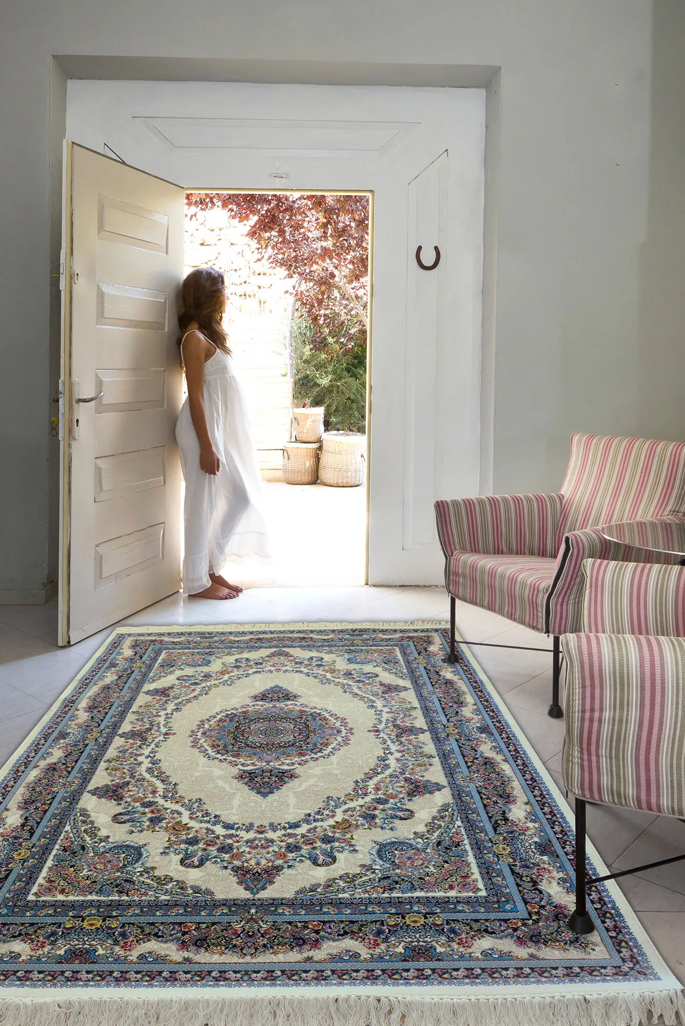 Parsa traditional rugs offer fine luxury with a thick and soft pile at 3,000,00 points per sqm (extremely dense). To finish this exquisite rug are beautiful hand knotted fringes, truly inspired by the rich Persian culutre of the past.